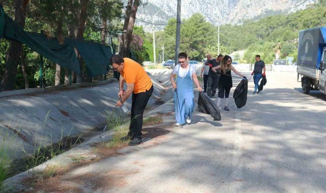 Kemer Belediyesi Temizlik İşleri Müdürlüğü ve İklim Değişikliği ve Sıfır Atık Müdürlüğü ekipleri ve Kemer'de yaşayan yabancı uyruklu kadınlar, Beldibi Mahallesi Saklı Koy ve ormanlık alanda temizlik yaptı.
