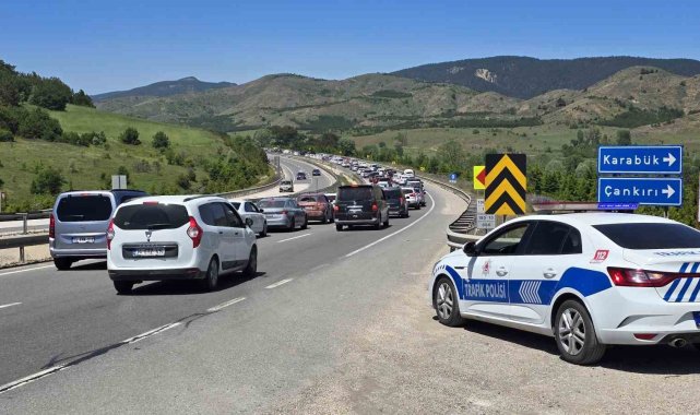 İstanbul'u Karadeniz'e bağlayan ve 21 ilin geçiş noktası olan Karabük'ün Kemikli Rampaları'nda bayram tatilinin dönüş yoğunluğu başladı.