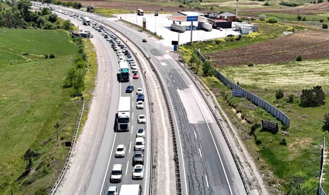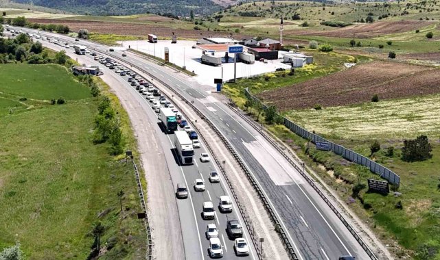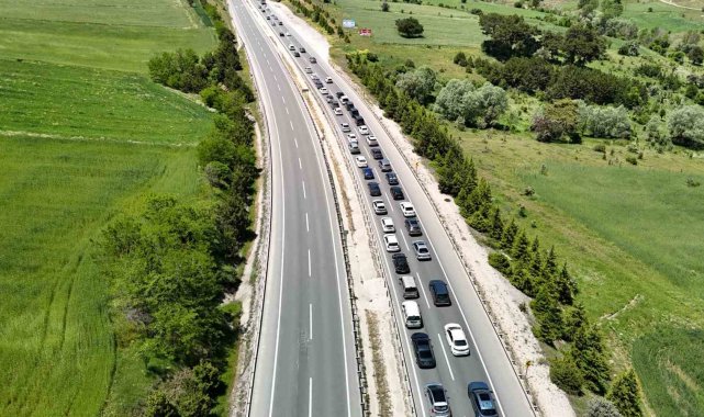 Zaman zaman trafiğin durma noktalarına geldiği uzun araç trafiği havadan görüntülendi.