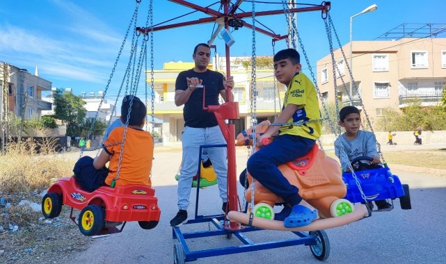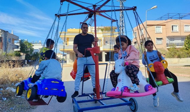 Kendi çocukken hiç binmedi: Mahalle mahalle gezerek çocukları dönme dolabına bindiriyor