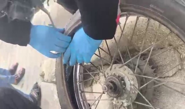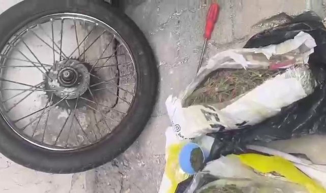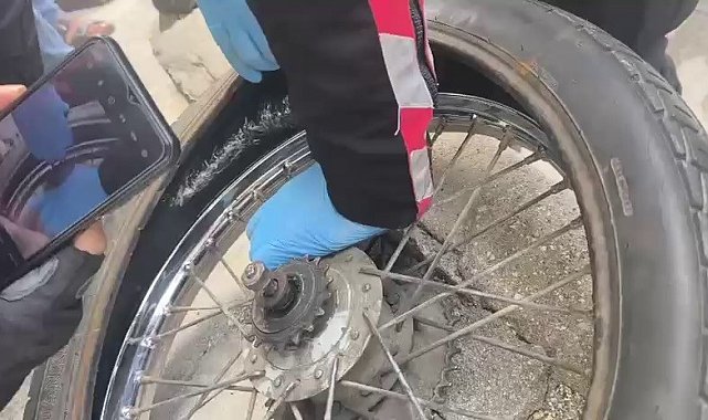 Kendi rızasıyla evindeki esrarı polise teslim etti, uyuşturucuyu motosiklet lastiğine gizlediği ortaya çıktı