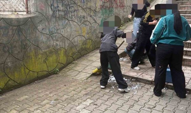 Zonguldak'ın Devrek ilçesinde doğul günü kutlamasında konfeti patlatarak çevreyi kirleten gençler, daha sonra alanı temizlediler.