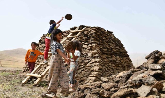 Yusuf Aslan isimli çocuk ise büyünce asker olacağını belirterek, "Günlerdir çalışıyoruz eğleniyoruz. Burada kalıyoruz, güzel geçiyor. Çok işimiz var, tezek topluyoruz" diye konuştu.