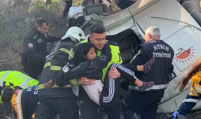 Kuşadası ilçesi Yeniköy yolu üzerinde virajı alamayarak yol kenarındaki tarlaya uçan yem yüklü tırda bulunan sürücüyle birlikte 4 kişi, araçta sıkıştı. İhbar üzerine olay yerine gelen Aydın Büyükşehir Belediyesi İtfaiye Daire Başkanlığı ekipleri, adeta zamanla yarışarak araçta sıkışan yaralıları kurtarmak için çalışma başlattı. Ekiplerin yoğun çabasının ardından araçta sıkışan 3 kişi kurtarılarak sağlık ekiplerine teslim edildi.