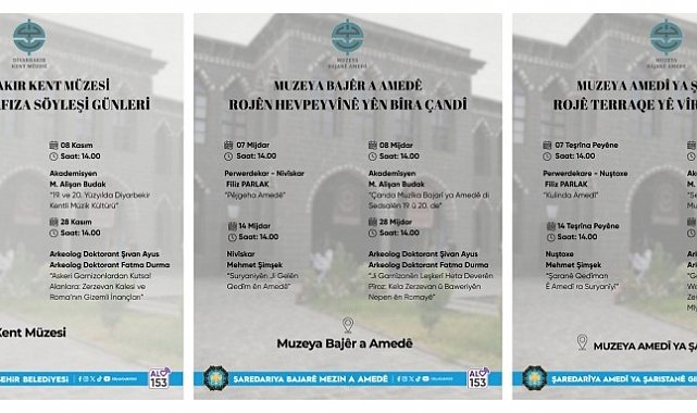 Diyarbakır Büyükşehir Belediyesi Cemilpaşa Konağı Kent Müzesinde Kasım ayı boyunca çeşitli başlıklarda, akademisyen, eğitimci, yazar ve arkeologların katılacağı kültürel hafıza söyleşileri düzenleyecek.