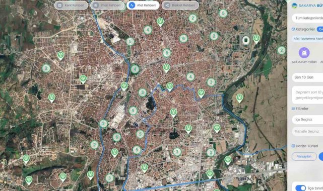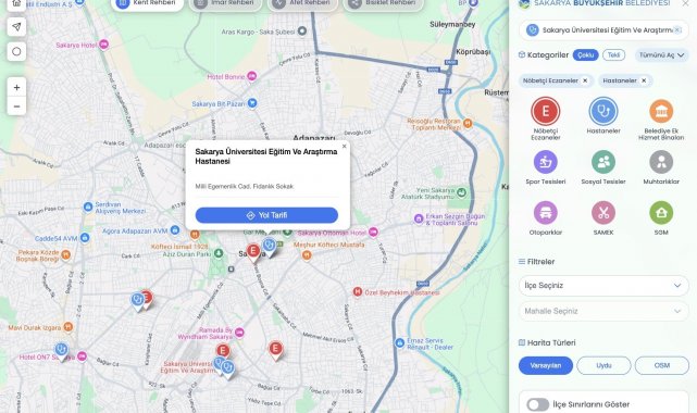 Sakarya Büyükşehir Belediyesi, şehirle ilgili tüm bilgileri tek çatı altında toplayan dijital bir platformu uygulamaya aldı. 'Kent Rehberi' adıyla hizmete sunulan yenilikçi sistem; kullanıcı dostu ara yüzüyle, vatandaşların şehirde ihtiyaç duyabileceği harita tabanlı verilere kolayca erişmesini sağlıyor. Nöbetçi eczanelerden bisiklet yollarına, otoparktan hastanelere ve toplanma alanlarına kadar pek çok bilgiye artık tek tıkla ulaşılabiliyor.
