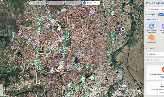 Dijital platformun içinde muhtemel afet durumlarında güvenli hareket edebilmek için hazırlanan afet rehberiyle toplanma alanları, acil çıkış yolları ve son depremler gibi kritik verileri kullanıcılarla buluşturuluyor. Geliştirilen platform, vatandaşların afetlere karşı bilinçli ve hazırlıklı olmasına katkı sunuyor. Sakarya'da bisiklet kullanımını destekleyen Bisiklet Rehberi ise, şehirdeki bisiklet yolları, park noktaları, SAKBİS istasyonları ve tamir alanlarını tek harita üzerinde sunuyor. Çevreci ulaşımı teşvik eden sistem, aynı zamanda alternatif sürüş rotalarıyla keyifli bir bisiklet deneyimi vadediyor. İmar Rehberinde ise vatandaşların ilçe, mahalle, ada ve parsel bazlı detaylara ulaşabileceği, nazım ve uygulama imar planları ile çevre düzeni planlarını tek noktada görebileceği bir yapı sunuyor. Platform sayesinde yapılaşma şartları ve şehir gelişimi anlık olarak takip edilebiliyor.