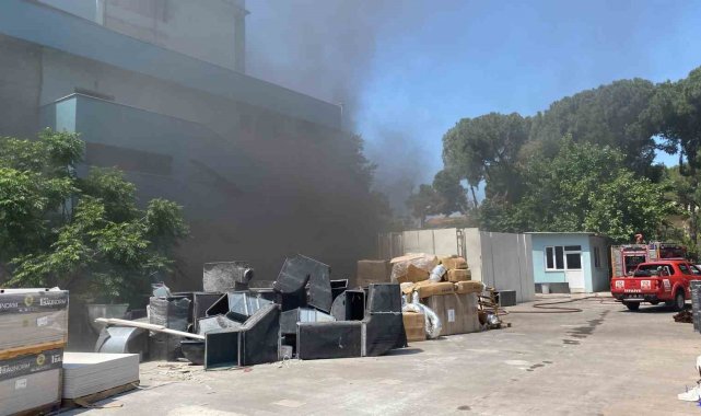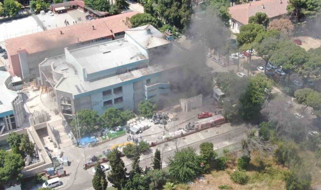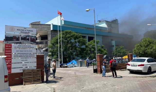 Aydın'ın Efeler ilçesinde İl Kültür ve Turizm Müdürlüğü Kültür Merkezi'nde güçlendirme çalışmaları sırasında çıkan kıvılcımlar izolasyon malzemelerine sıçrayarak yangına neden olurken, şehir merkezinde gökyüzünü kaplayan kara dumanlar görenleri panikletti.