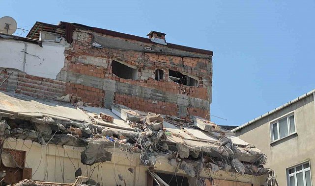 Kentsel dönüşüm yıkımında Sultangazi'de 5 katlı binanın duvarı zarar gördü