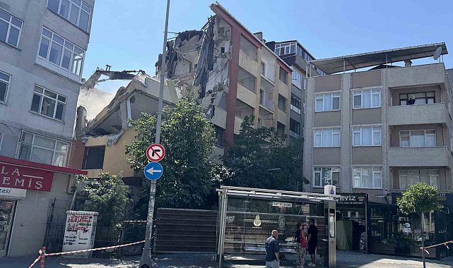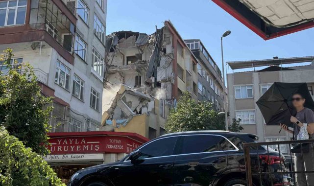 İstanbul Bahçelievler'de bir binanın yıkımı sırasında 3 kat birden çökünce bina önündeki otobüs durağında bekleyen vatandaşlar büyük panik yaşadı.