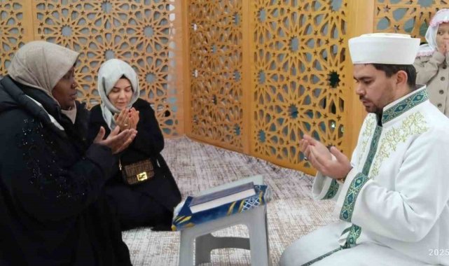 Adıyaman'ın Samsat ilçesine gelen Kenyalı kadın İslam dinini seçerek Müslüman oldu.