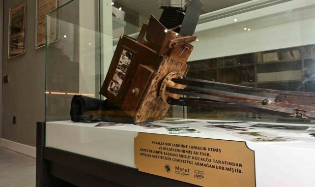 Kepez Belediye Başkanı Mesut Kocagöz, Antalya'nın tarihine tanıklık etmiş alaminüt fotoğraf makinesini, Antalya Gazeteciler Cemiyeti (AGC) tarafından oluşturulan Basın Galerisi'ne hediye etti.