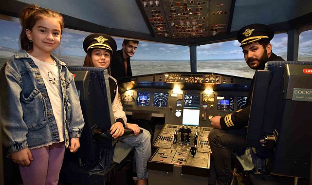 Kepez'de çocuklar simülasyonla yolcu uçağı kullandı