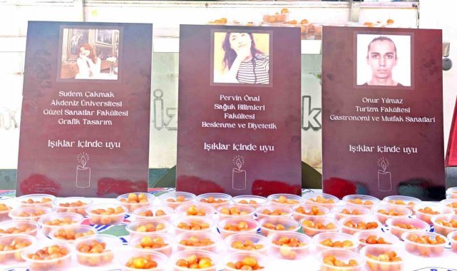 Antalya'nın Döşemealtı ilçesinde 1 Şubat'ta meydana gelen ve 10 kişinin hayatını kaybettiği trafik kazası, herkesi derinden üzdü. Kepez Belediyesi, ara tatilin ardından memleketlerinden eğitim gördükleri Akdeniz Üniversitesi'ne dönerken kaza geçiren 3 üniversite öğrencisi için üniversite kampüsünde lokma hayrı düzenledi. Akdeniz Üniversitesi Doğu (Meltem) girişinde gerçekleştirilen lokma dağıtımı sırasında genç yaşta hayatını kaybeden öğrenciler dualarla yad edildi. Akdeniz Üniversitesi öğrencileri, düzenlenen hayırda duygu dolu anlar yaşadı. Lokma hayrı, Akdeniz Üniversitesi Güzel Sanatlar Fakültesi Grafik Tasarım Bölümü öğrencisi Sudem Çakmak (19), Sağlık Bilimleri Fakültesi Beslenme ve Diyetetik Bölümü öğrencisi Pervin Önal (22) ile Turizm Fakültesi Gastronomi ve Mutfak Sanatları Bölümü öğrencisi Onur Yılmaz (21) anısına gerçekleştirildi.