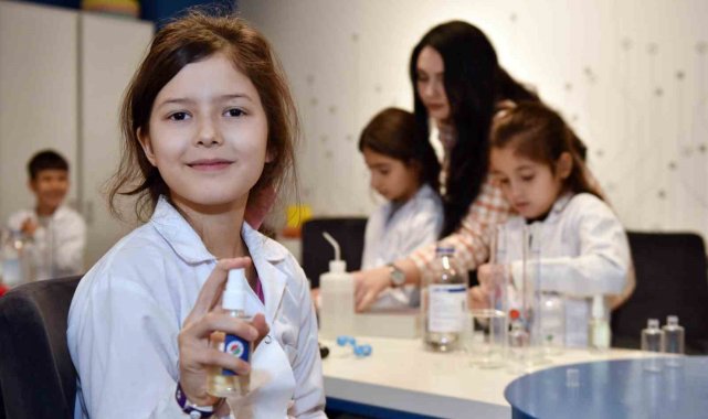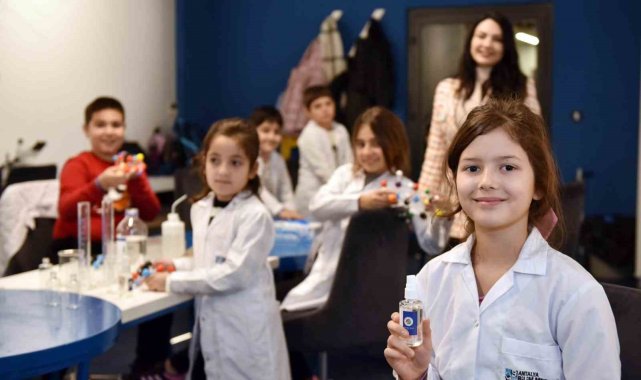 Kepez Belediyesi Antalya Bilim Merkezi'nin atölyelerine gelen öğrenciler, çeşitli üretimler yaparken aynı zamanda etkili düşünme yollarını ve problem çözme yeteneklerini de geliştiriyor. Pazartesi hariç her gün sabah ve öğleden sonra atölyeleri olan merkezdeki fen bilimlerini tercih eden çocuklar, laboratuvar tekniklerini kullanarak florürsüz diş macunu, parabensiz şampuan, kokulu mum ve sabun gibi günlük hayatta kullandıklarını ihtiyaç malzemelerini üretiyor.