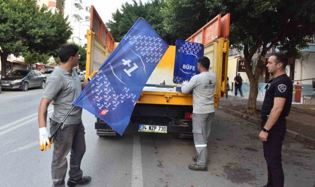 Kepez Belediyesi Zabıta ekipleri, Mehmet Akif Caddesi'nde iş yerleri tarafından yol ve kaldırıma bırakılan flama, duba ve reklam afişi gibi materyalleri kaldırarak caddeyi yeniden düzenli, güvenli ve erişilebilir bir hale getirdi.