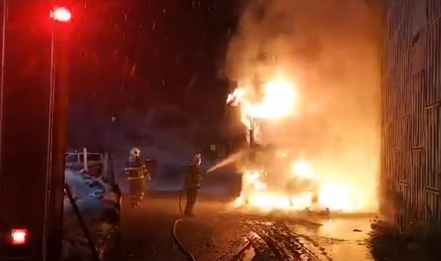 Kereste yüklü kamyon alev alev yandı