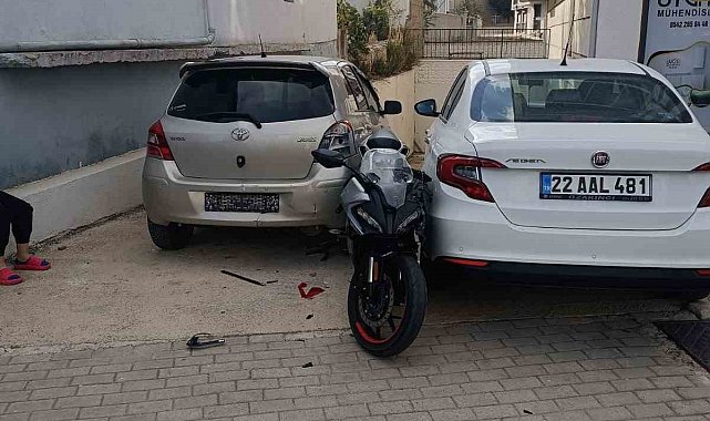 Keşan'da 4 otomobile çarpan motosiklet sürücüsü yaralandı