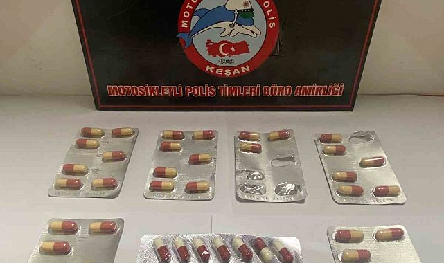 Alınan bilgiye göre, Yörük Mahallesi Zati Yörüker Caddesi üzerinde durumundan şüphelendikleri İ.S.'yi durduran Keşan İlçe Emniyet Müdürlüğü ekipleri, şüphelinin üzerinde 7 tablet halinde toplamda 51 adet sentetik ecza ele geçirildi.
