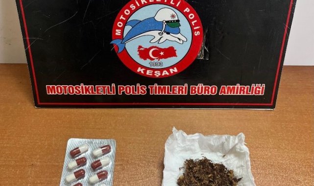 Alınan bilgiye göre, Keşan İlçe Emniyet Müdürlüğü ekipleri, Yörük Mahallesi'nde farklı gün ve saatlerde yaptığı denetimlerde, şüphe üzerine durdurduğu S.M.'nin üst aramasında, peçetelere sarılı 11 gram uyuşturucuya bulanmış tütün, M.Ç.'nin üzerinde 5,18 gram uyuşturucuya bulanmış tütün ve 14 sentetik ecza ele geçirildi. Polisin üst araması yaptığı V.O. ve G.Ç.'nin üzerinde de 6,43 gram uyuşturucuya bulanmış tütün ile alüminyum folyo kağıtlar içerisinde 4,99 gram uyuşturucu ele geçirildi. Gözaltına alınan S.M., M.Ç., V.O. ve G.Ç. hakkında adli işlem başlatıldı.