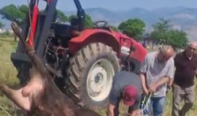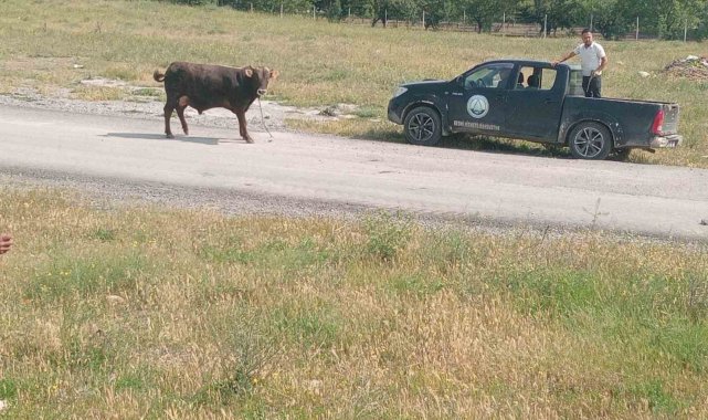 Kesimden kaçan tosun, uyuşturucu iğneyle sakinleştirildi