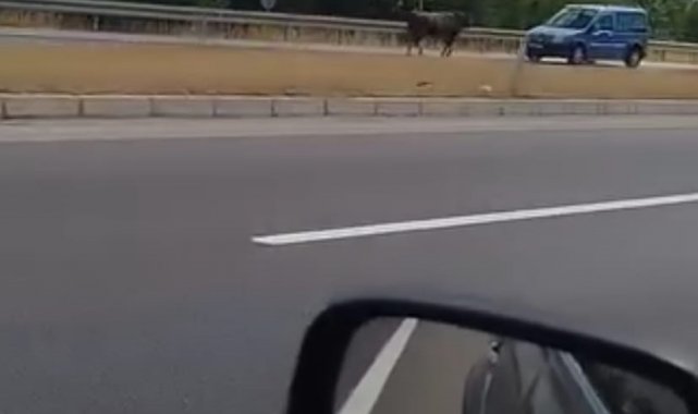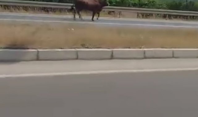 Amasya'da kesime götürülürken sahibinin elinden kaçan boğa karayolunda trafiğe çıktı, yanlarından geçtiği araçların sürücülerini şaşırttı.