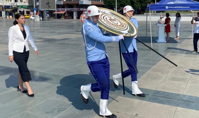 Antalya'da Kıbrıs Barış Harekâtı'nın 51. Yıldönümü'nde KKTC'nin 20 Temmuz Barış ve Özgürlük Bayramı nedeniyle konuşan KKTC Antalya Başkonsolosu Aslı Erkmen tarafından Atatürk Anıtı'na çelenk sunuldu.
