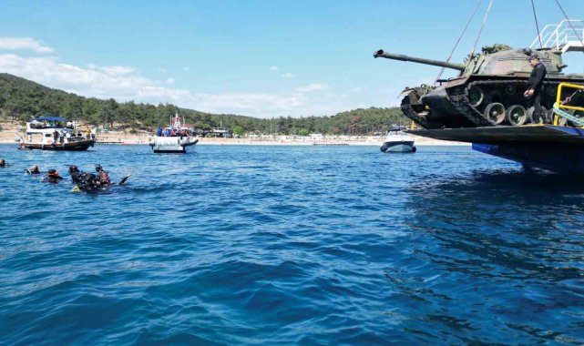 Edirne'de sualtı yaşamını desteklemek ve dalış turizmini geliştirmek hedefiyle Kıbrıs Barış Harekatı'nda kullanılan 1960 model tank, Saros Körfezi'nde batırıldı.