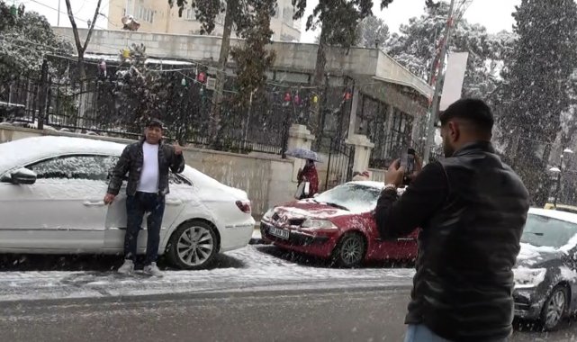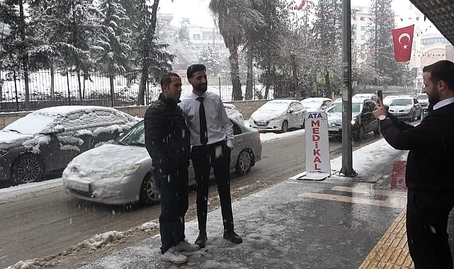 Kilis'te etkili olan kar yağışı, kent genelinde görsel şölen oluştururken vatandaşlar karın keyfini çıkardı.