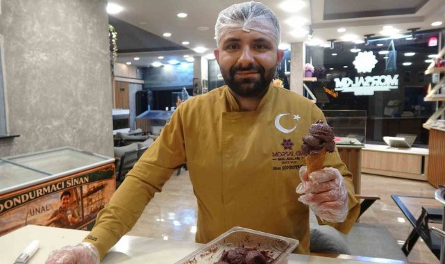 Kilis'in coğrafi işaretli horoz karası üzümü, bu kez dondurma olarak sofralara taşındı. Üç kuşaktır dondurma ustalığı yapan Sinan Gözüuykulu'nun geliştirdiği özel tarif, vatandaşlardan yoğun ilgi görüyor. Tatlı ustası Sinan Gözüuykulu, dedesinden devraldığı mesleği daha ileri taşımak amacıyla farklı bir ürün ortaya koyduklarını belirterek, "Hem çocukların hem gençlerin sevebileceği bir ürün yapmak istedik. Kilis'imizin tescilli horoz karası üzümünü dondurma haline getirdik" dedi.