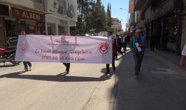 Kilis'te 2025 Aile Yılı etkinlikleri çerçevesinde farkındalık oluşturmak amacıyla yürüyüş gerçekleştirildi. Hacı Cümbüş Camii önünden başlayan yürüyüş, Cumhuriyet Meydanı'nda sona erdi.
