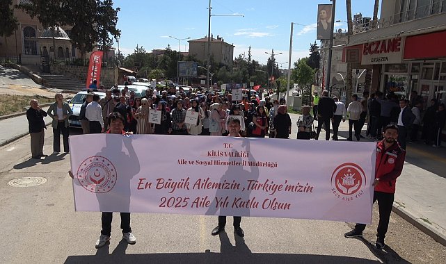Etkinliğe Kilis Vali Yardımcısı Murat Demirbilek, Aile ve Sosyal Hizmetler İl Müdürü Emre Çağlan, İl Müdür Yardımcısı Ali Çelik ve çok sayıda vatandaş katıldı. Katılımcılar, 'En Büyük Ailemizin, Türkiye'mizin 2025 Aile Yılı Kutlu Olsun' yazılı pankart eşliğinde yürüdü. Vatandaşlar da 'Sevgi ve Bağlılığın En Güçlü Kalesi Ailedir' yazılı pankart taşıyarak etkinliğe destek verdi.