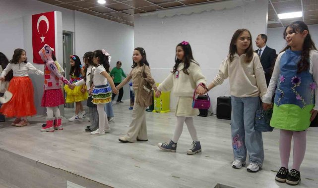Kilis'te 30 Mart Dünya Sıfır Atık Günü kapsamında düzenlenen etkinlikte, öğrencilerin atık malzemelerden hazırladığı eserler sergilenirken, geri dönüşüm temalı defile de ilgi gördü.