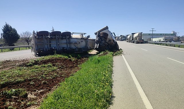 Kilis-Gaziantep karayolunda kontrolden çıkan beton mikseri refüje devrildi. Kazada yaralanan olmazken, araçta maddi hasar oluştu.