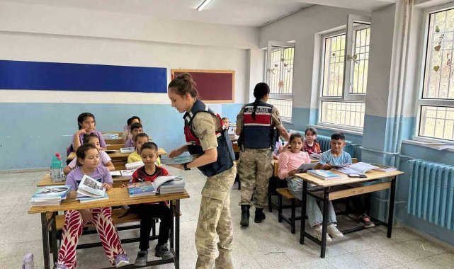 Eğitim-öğretim yılı açılışına katılan ekipler, öğrencilere Jandarma Çocuk Dergisi dağıtarak çocuklarla yakından ilgilendi.