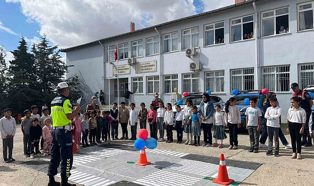 Kilis'in Elbeyli ilçesinde jandarma ekipleri, ilkokul öğrencilerine trafik kuralları hakkında bilgilendirme yaparak boyama ve hikaye kitabı dağıttı.