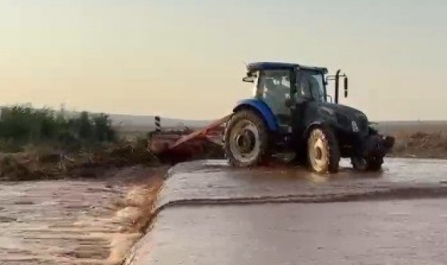 Kilis'in Elbeyli ilçesinde yaz ortasında etkili olan sağanak nedeniyle taşkınlar meydana geldi.
