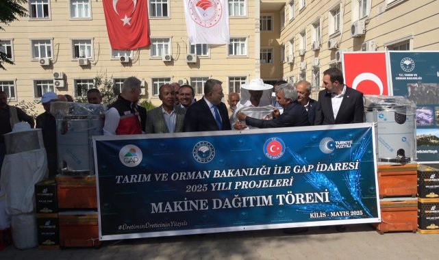 Tarım ve Orman Bakanlığı ile GAP Bölge Kalkınma İdaresi tarafından desteklenen projeler kapsamında Kilis'te çiftçilere süt sağım makinesi, üzüm sıkma makinesi, sırt pompası ve arıcılık ekipmanları dağıtıldı. Kilis Vali'si Tahir Şahin, projelerin tarımsal üretim, istihdam ve bölgesel kalkınmaya katkı sağlayacağını söyledi.