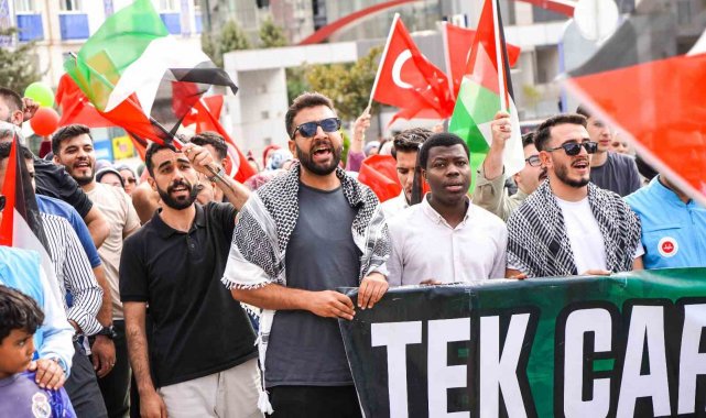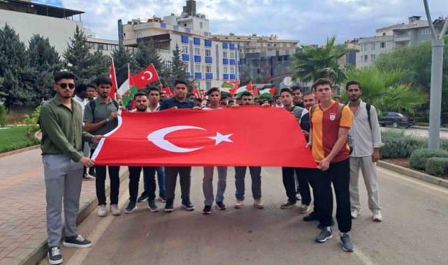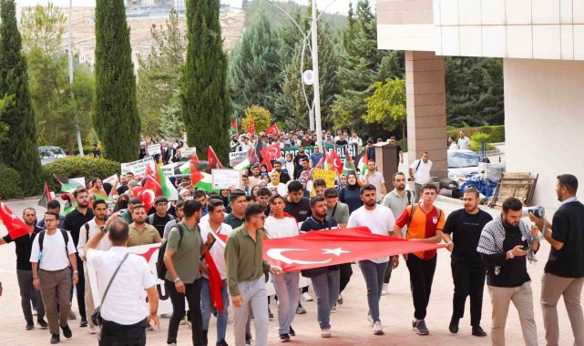 Üniversite içerisinde sloganlar eşliğinde yürüyen öğrenciler, İsrail'in Gazze'ye yönelik saldırılarının insanlık tarihine kara bir leke olarak geçtiğini dile getirdi. Ellerinde Filistin bayrakları taşıyan gençler, tekbirler getirerek "Katil İsrail hesap verecek, "Filistin özgür olacak", "Rotamız Gazze, yükümüz özgürlük" ve "Tek çare İslam birliği" sloganları attı.