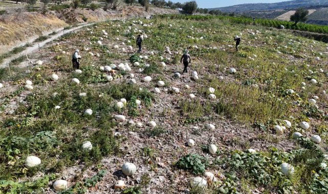 Kilolarca ağırlığa ulaşan tescilli beyaz kabakta hasat başladı
