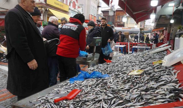 Edirne'de fiyatı düşen hamsi tezgahları şenlendirdi. Kilosunun 100 liradan satıldığını duyan vatandaşlar sıraya girdi, kasalar dolusu hamsi kısa sürede tükendi.