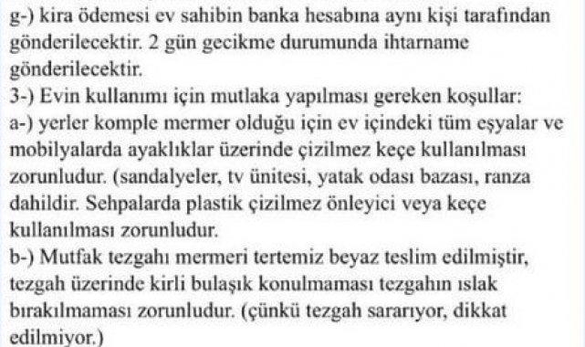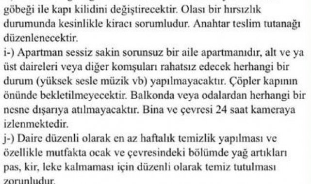 Kiracısını her 50 günde kontrol etmek isteyen ev sahibinden 3 sayfalık sıra dışı kriter listesi