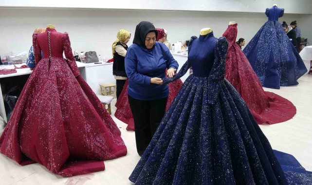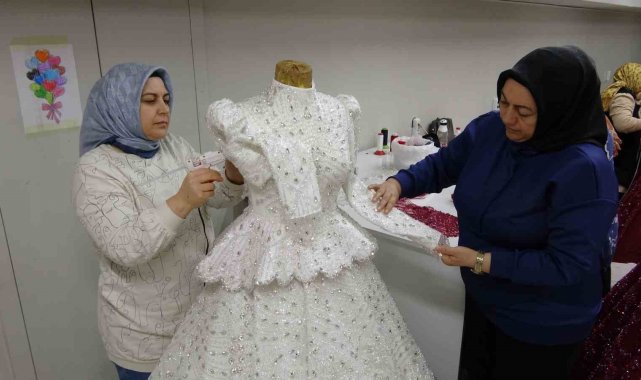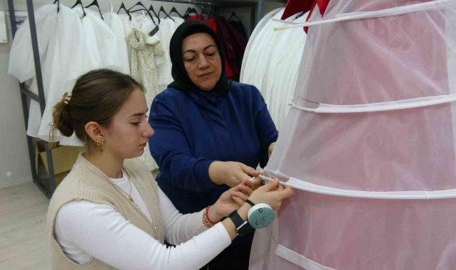 Evli ve 3 çocuk annesi 48 yaşındaki Nesrin Solmaz, işinde kendini iyice geliştirdikten sonra hurdacıdan aldığı dikiş makinesini tamir ettirip gelinlik ve abiye üretimine başladı. Kısa sürede işleri artınca kızları ile üretime devam eden Solmaz, daha sonra 4 kişiyi istihdam etti.