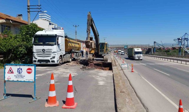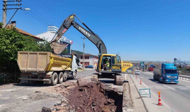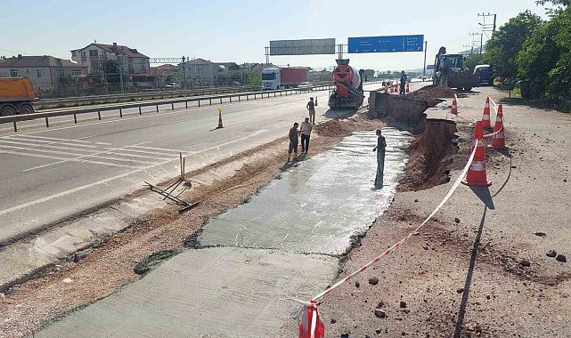 Körfez ilçesi Kirazlıyalı mevkiinde D-100 Karayolu'nda trafiği rahatlatmak için durak cebi yapılıyor.