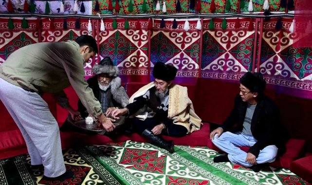 Kırgız aksakallıları otağ çadırında geçmişi yâd ediyor