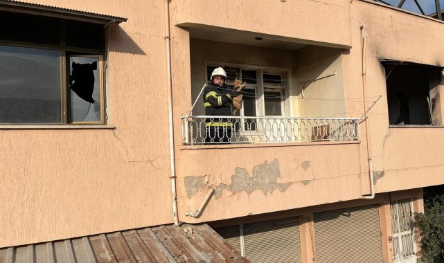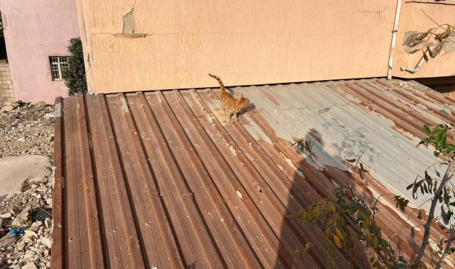 Hatay'da çatıda mahsur kalan kedi itfaiye ekipleri tarafından kurtarıldı.