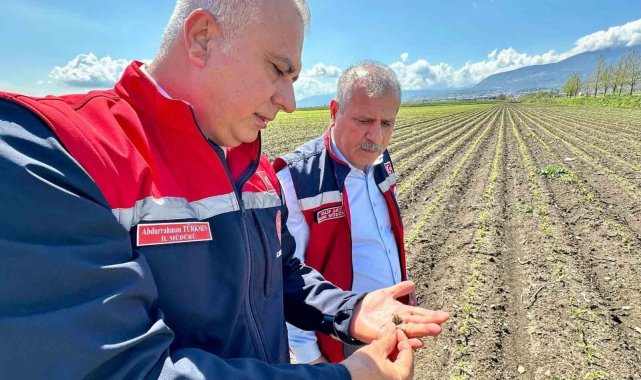 Hatay İl Tarım ve Orman Müdürlüğü ekipleri, Kırıkhan ilçesinde mısır ekili alanlarda incelemelerde bulundu.