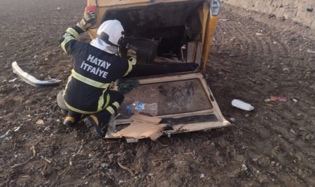 Hatay'da şarampole devrilerek tarlaya uçan otomobilin sürücüsü yaralandı.