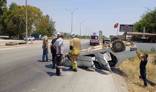 Hatay'da takla atarak ters dönen otomobildeki 2 kişi yaralandı.