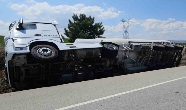 Kırıkkale'de kontrolden çıkan akaryakıt yüklü tanker şarampole devrildi.
